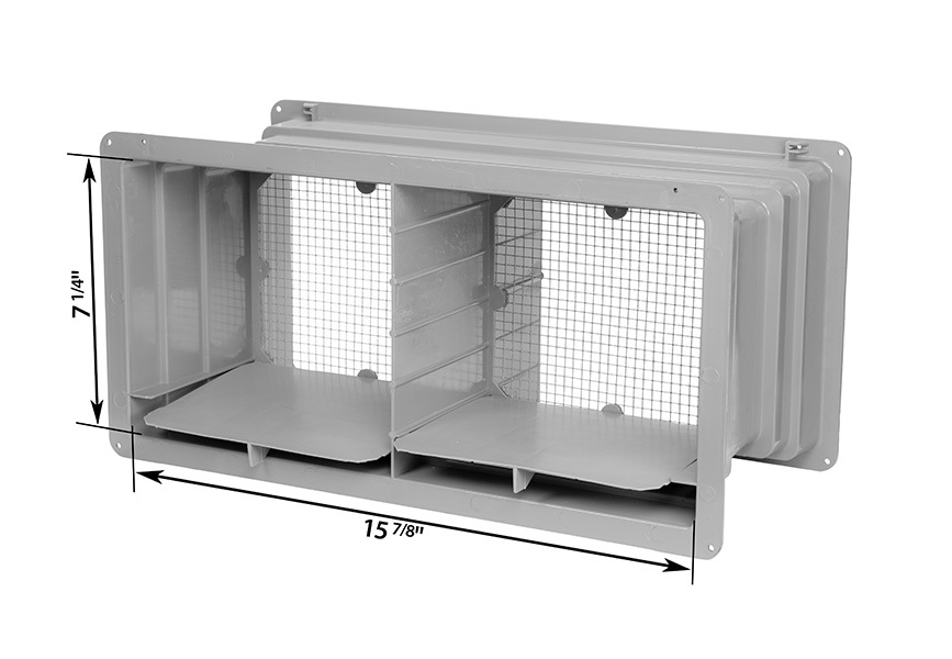 - Inside (Open area) dimensions of a crawl space vent: 7 ¼” tall x 15 7/8” long
