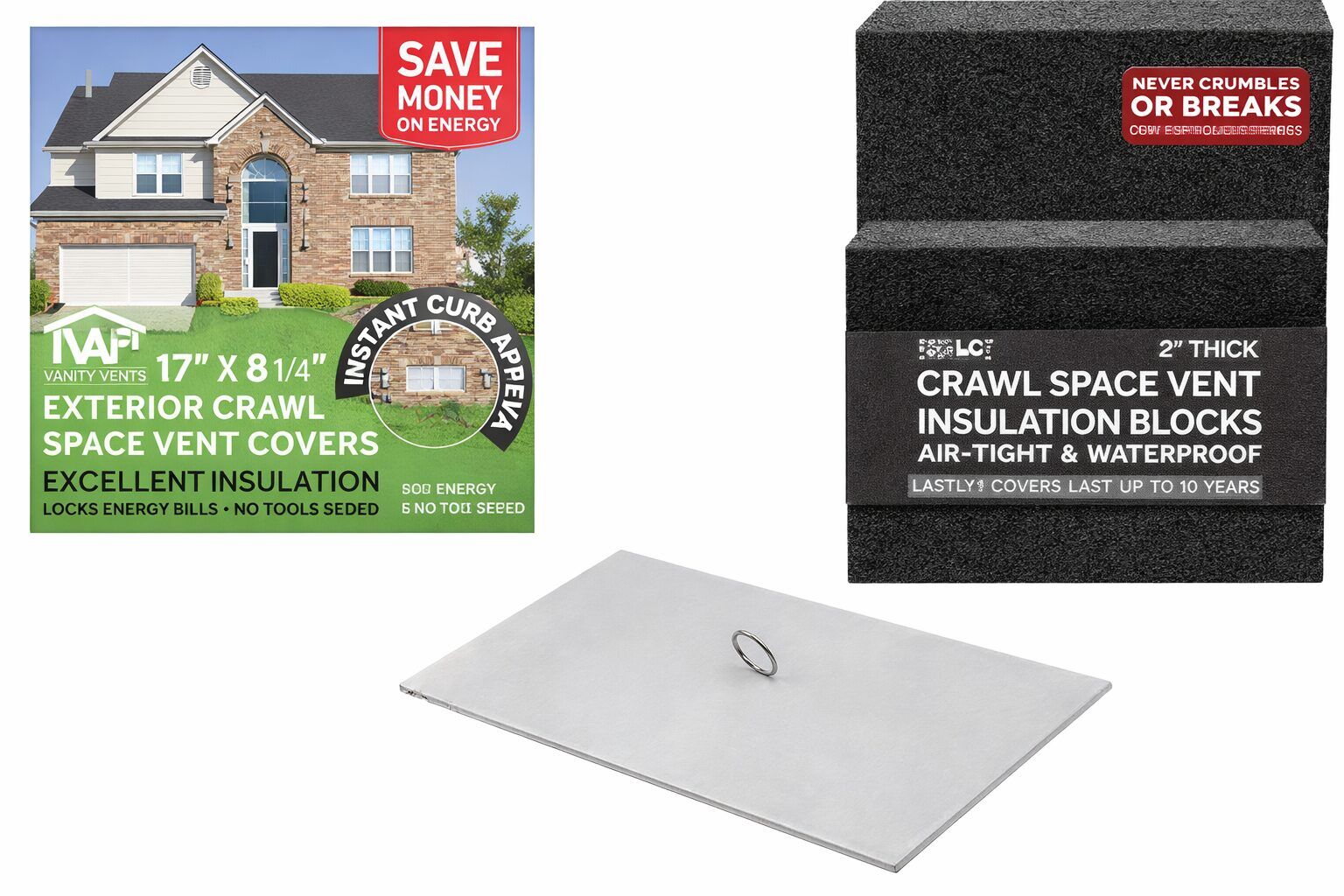 Vanity Vents products are durable, environmentally friendly crawl space vent covers and insulation blocks that enhance the curb appeal of your home while saving you money on energy bills.